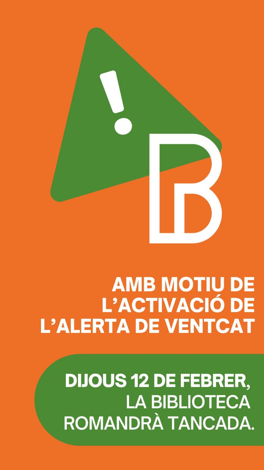 Amb motiu de l'activació del pla d'Alerta VENTCAT, la Biblioteca Pilarin Bayés romandrà tancada avui dijous 12 de febrer. Més info