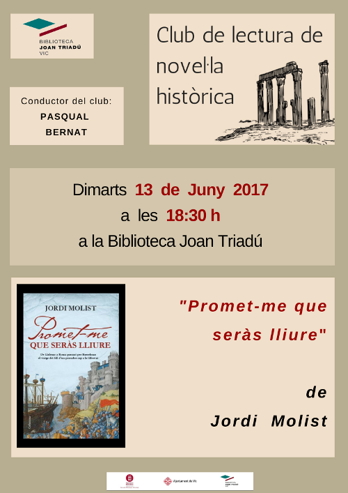 A la tertúlia del mes de juny comentarem el llibre “Promet-me que seràs lliure” de Jordi Molist.