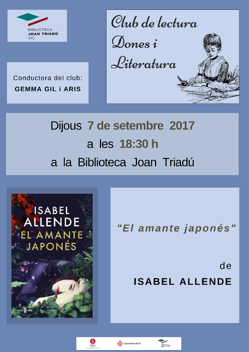 A la tertúlia del mes de setembre comentarem el llibre “El amante japonés” d’Isabel Allende.