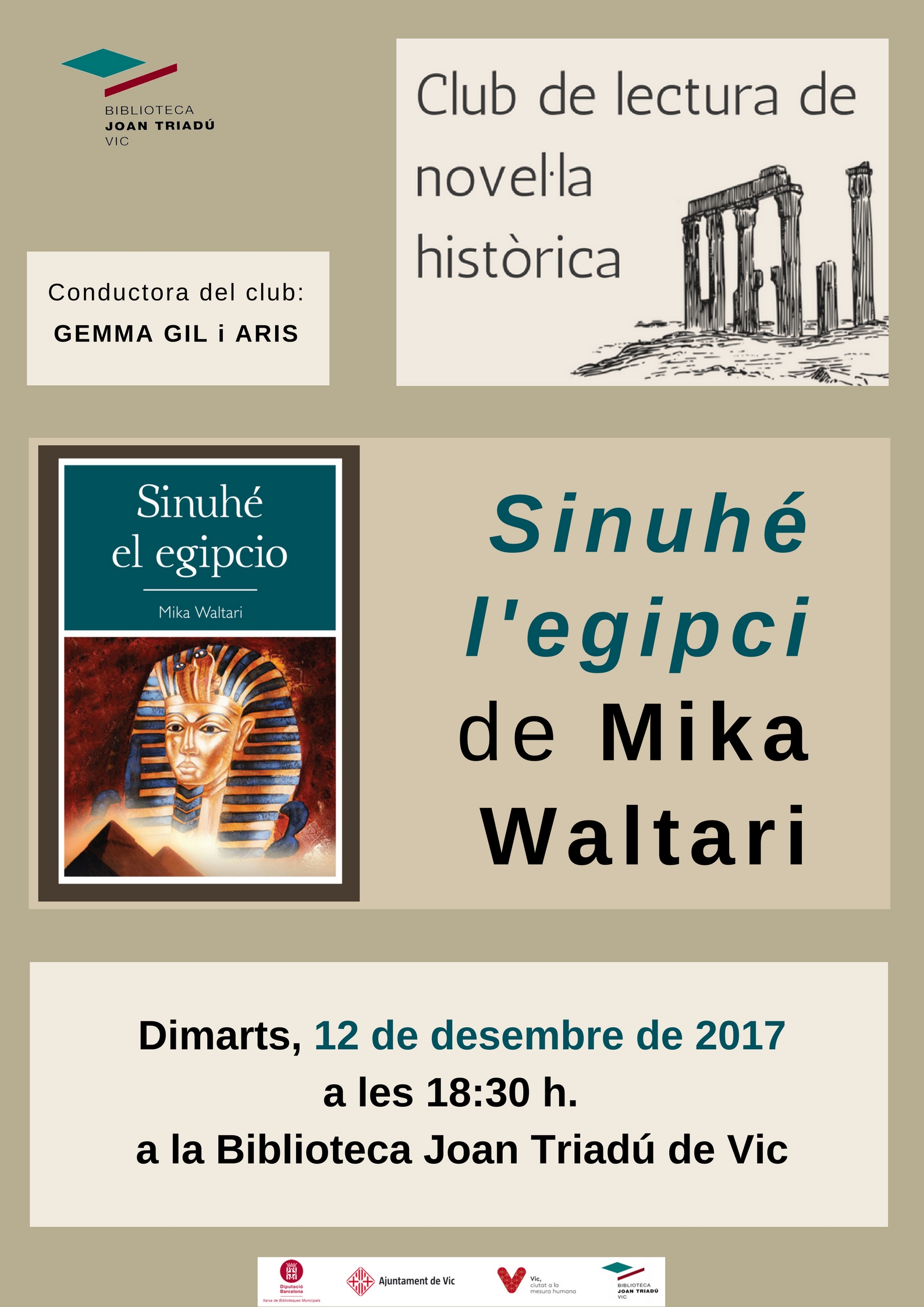A la tertúlia del mes de desembre comentarem el llibre Sinuhé l’egipci de Mika Waltari.