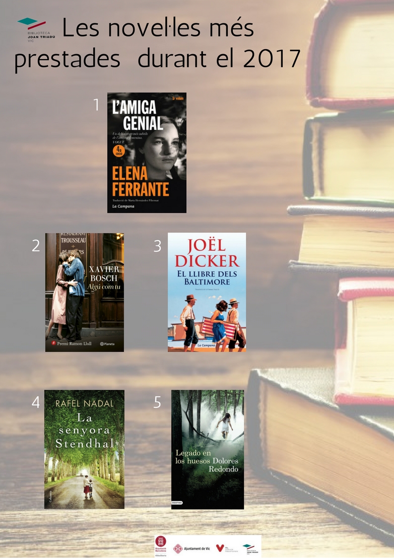 Les novel·les més prestades durant l’any 2017 a la Biblioteca Joan Triadú de Vic han estat: