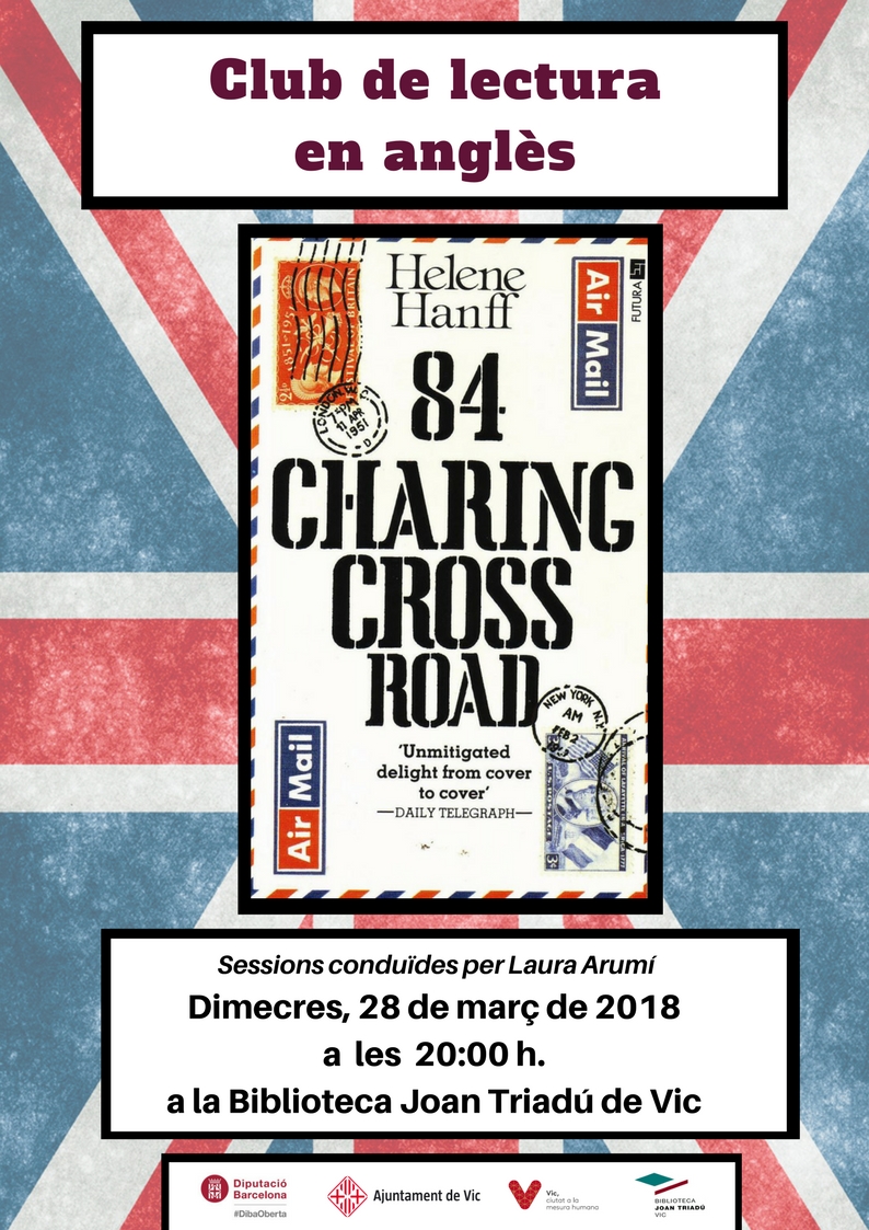 A la tertúlia del mes de març comentarem tot practicant anglès el llibre 84, Charing Cross road de Helene Hanff.