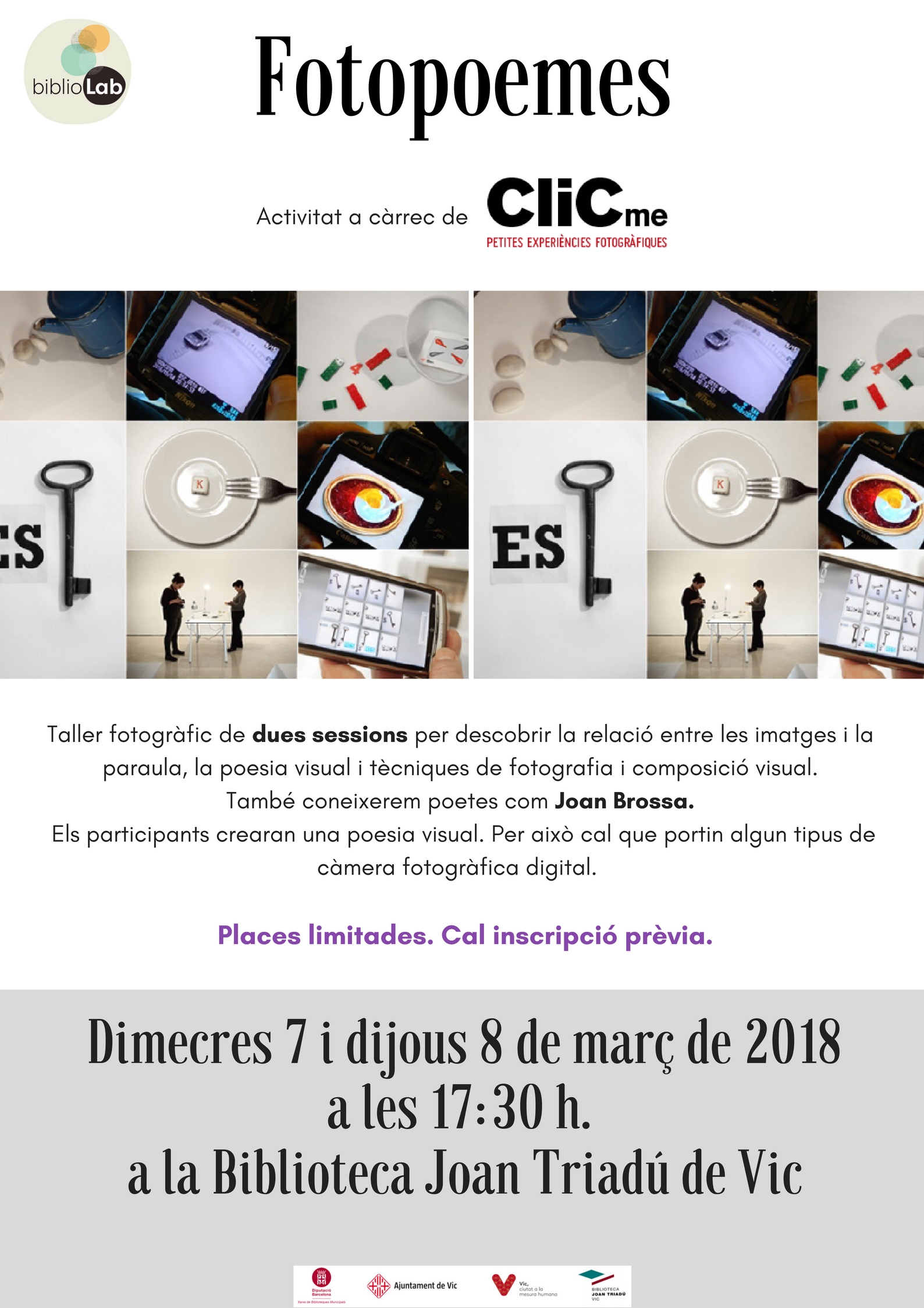 ETIQUETES: CliCme petites experiències fotogràfiques, Fotopoemes, Poesia visual, Taller BiblioLab