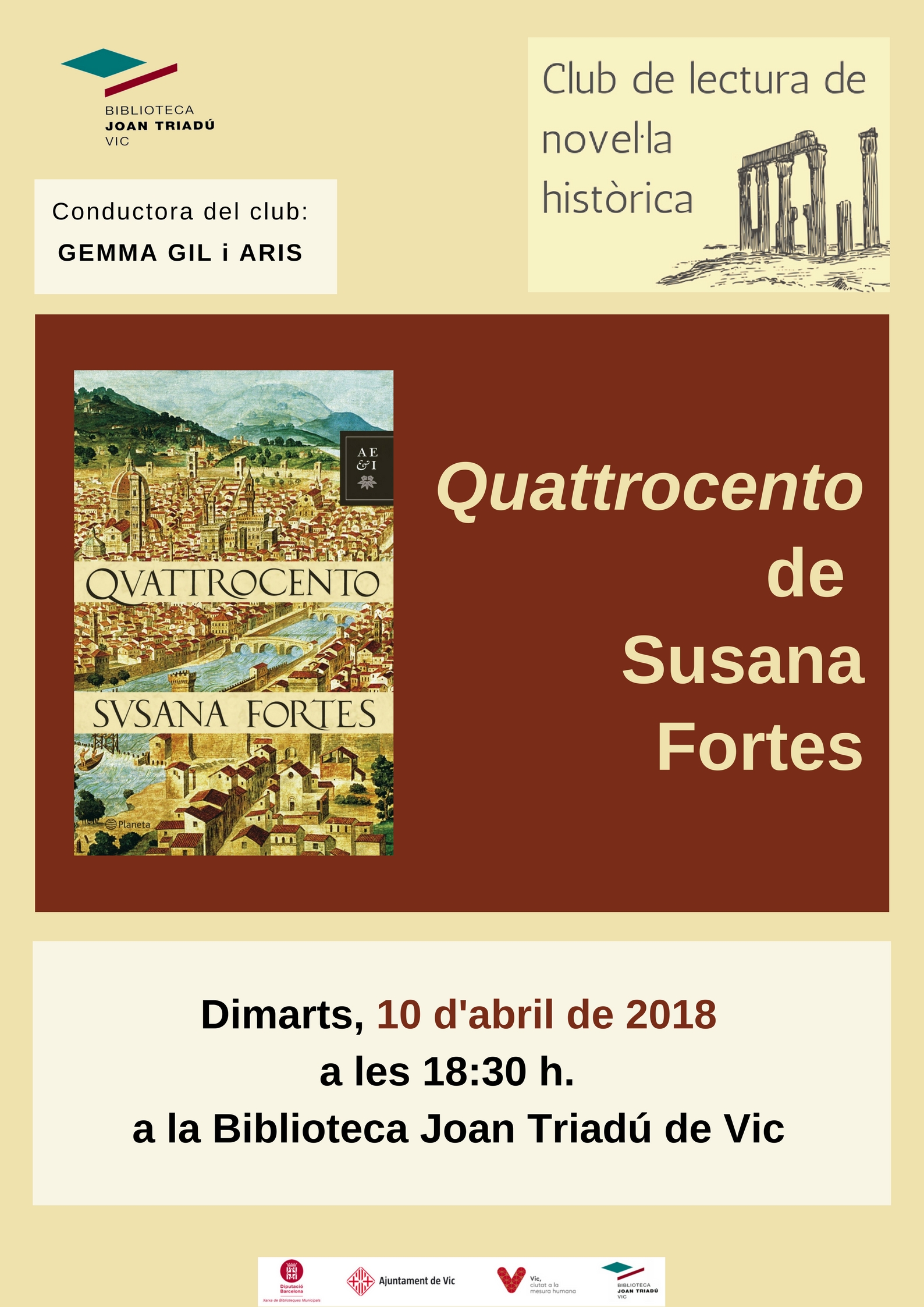 A la tertúlia del mes d’abril comentarem el llibre Quattrocento de Susana Fortes.