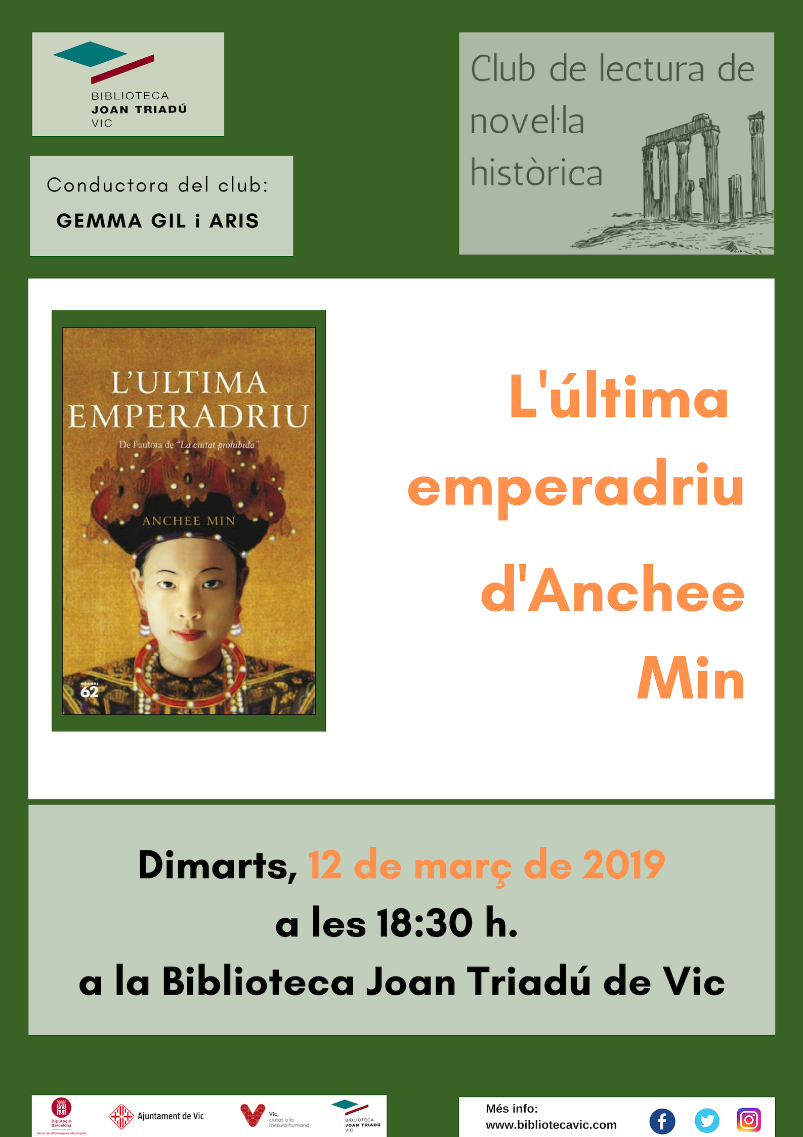 A la tertúlia del mes de març comentarem el llibre L’última emperadriu d’Anchee Min.