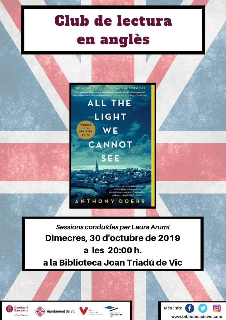 A la trobada del Club de lectura en anglès del mes d’octubre comentarem All the light we cannot see d’Anthony Doerr.