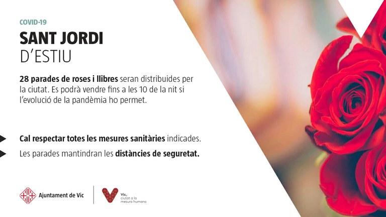 I com que les dades, de moment, ens són favorables finalment l’Ajuntament ha anunciat que a Vic es podrà celebrar el Sant Jordi d’estiu a la Plaça i també a diversos punts de la ciutat.