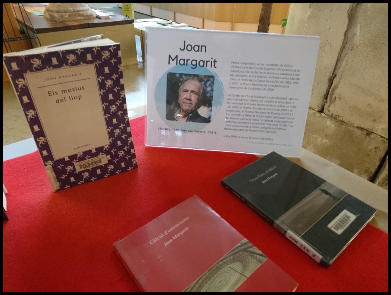 El passat 16 de febrer de 2021 coneixíem la notícia de la mort de l’arquitecte i poeta Joan Margarit (Sanauja, 1938 – Sant Just Desvern, 2021) a l’edat de 82 anys. Com a arquitecte va impartir classes fins a la seva jubilació a l’Escola Superior d’Arquitectura de Barcelona d’on era Catedràtic de Càlcul d’estructures. A més a més, va ser responsable de la rehabilitació de l’Estadi de Montjuic i l’Anella Olímpica i va formar part de l’equip d’arquitectes de la construcció de la Sagrada Família de Barcelona, entre altres projectes.