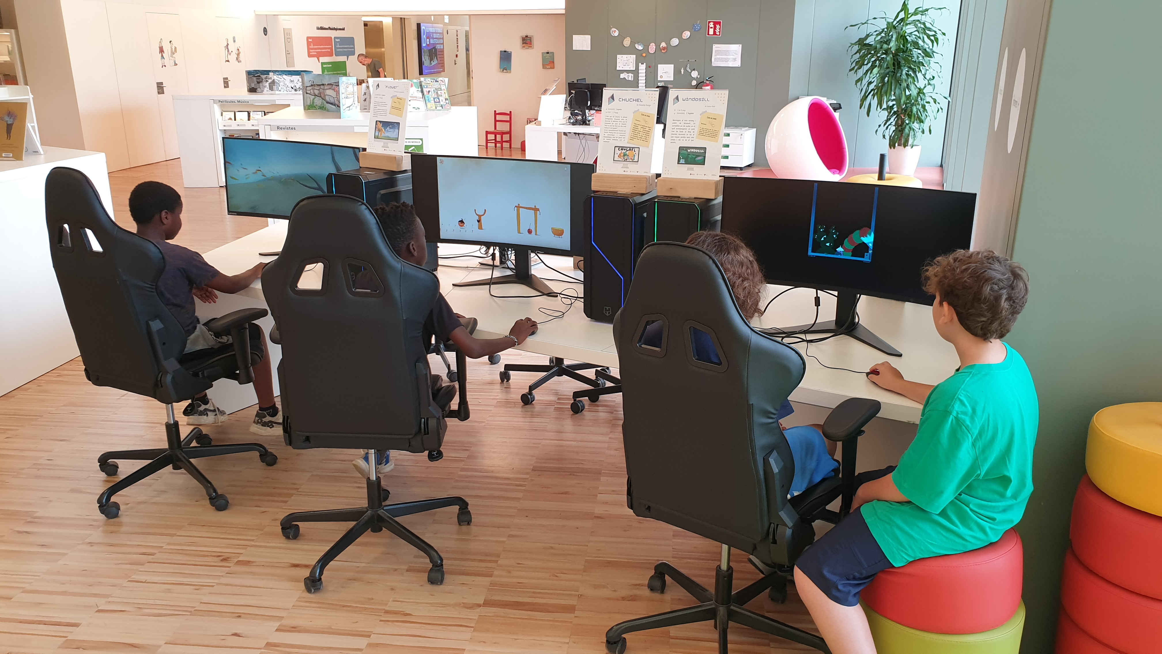 La biblioteca disposa de dos espais, diferenciats per l’edat dels usuaris als quals s’adreça, on es duu a terme una programació mensual de jocs acuradament seleccionats. Amb aquesta selecció es pretén que els usuaris gaudeixin de l’enorme riquesa estètica que pot arribar a tenir el món de la ficció digital.