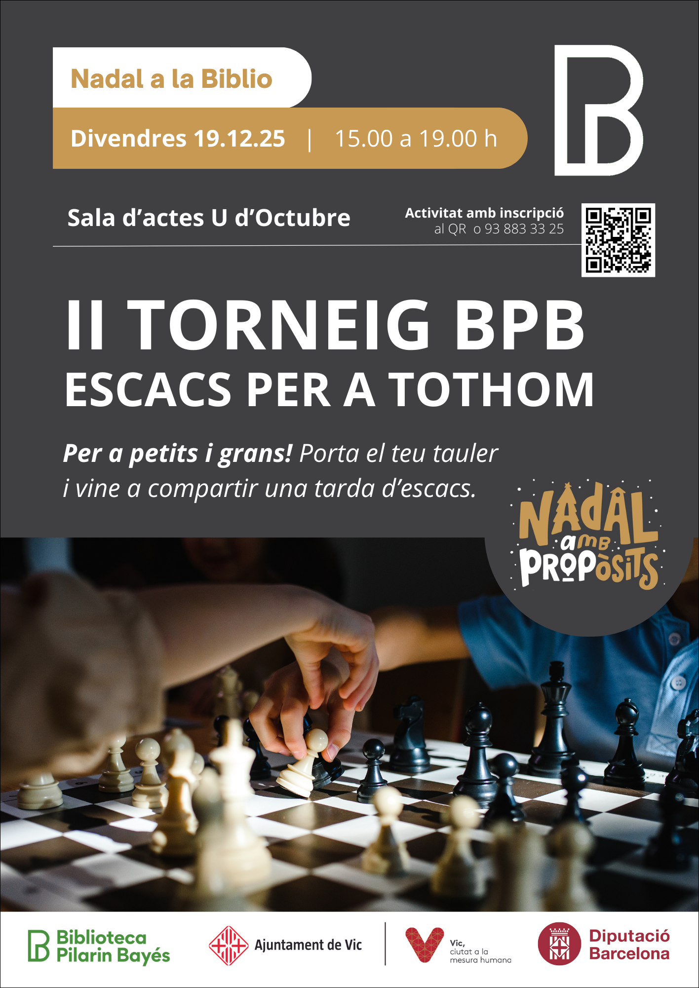 Per a totes les edats, petits i grans. Porta el teu tauler i comparteix una tarda d’escacs.
