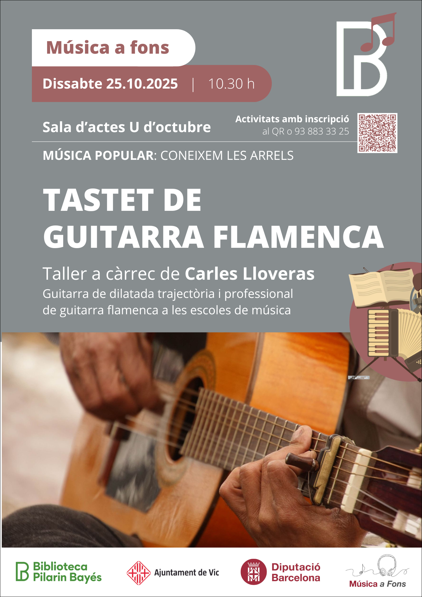 Tastet de guitarra flamenca a càrrec de Carles Lloveras, guitarrista compositor i lletrista, titulat a l’Escola Superior de Guitarra Flamenca del Conservatori del Liceu de Barcelona i expert en pedagogia aplicada a la guitarra flamenca.