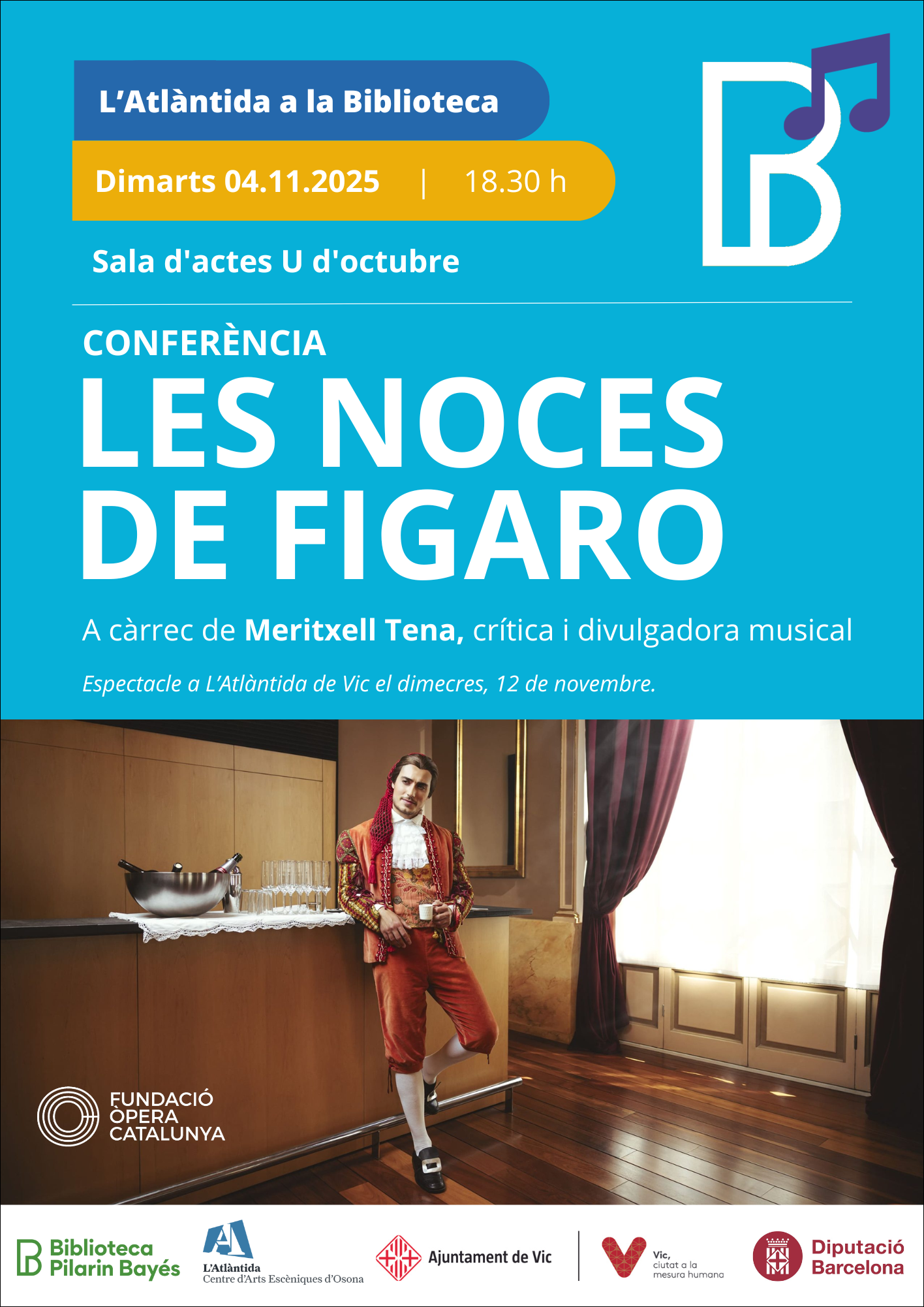 L’òpera Les noces de Fígaro s’interpretarà al teatre L’Atlàntida de Vic el dimecres, 12 de novembre a les 18:00 h.