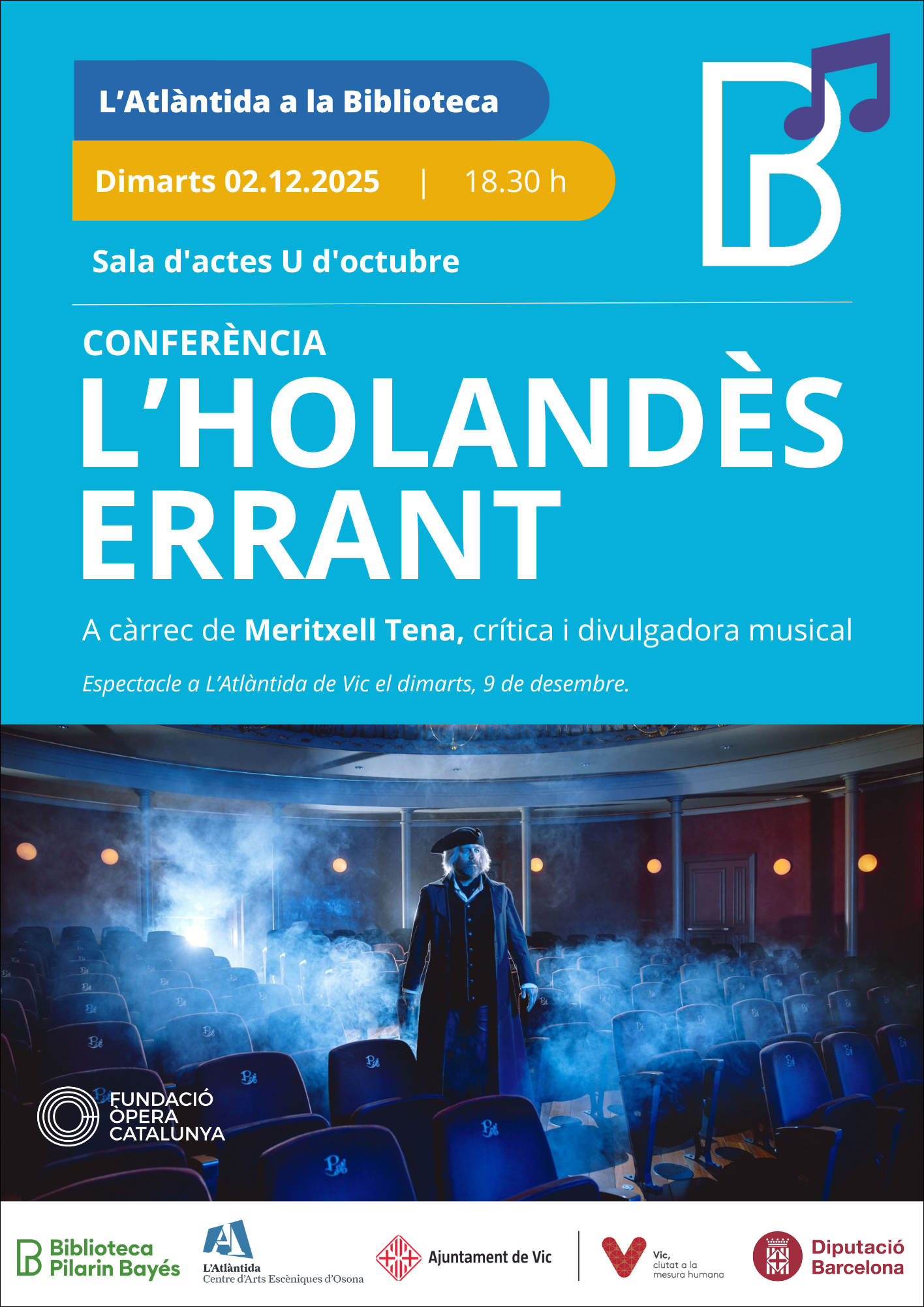 L’òpera L’holandès errant s’interpretarà al teatre L’Atlàntida de Vic el dimarts, 9 de desembre a les 18:00 h.