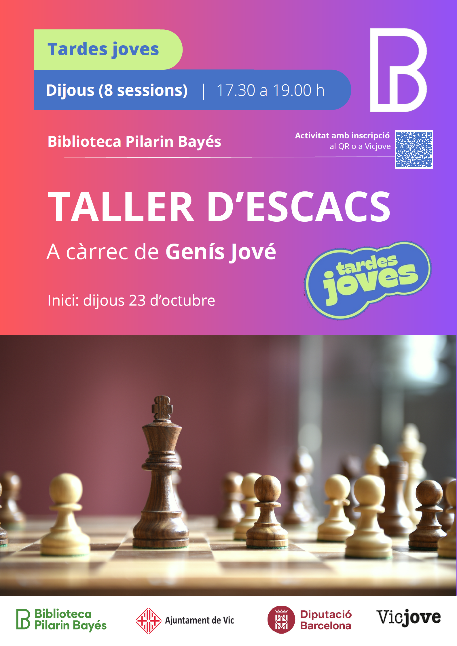 En el marc del programa d’activitats Tardes joves, us convidem a participar en un Taller d’escacs a càrrec de Genís Jové.