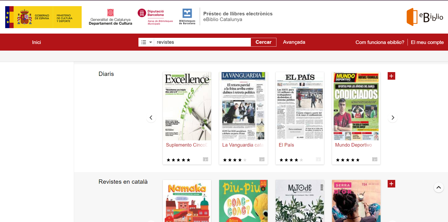 La plataforma de préstec digital de les biblioteques e-Biblio ha incorporat, per aquests dies de confinament, l'edició impresa d'alguns diaris en català i castellà que es poden descarregar en els vostres dispositius i tenir en préstec durant dues hores. Els títols disponibles són: La Vanguardia (en català i castellà) El País El diari econòmic Cinco Días El diari esportiu Mundo Deportivo Aquests títols s'afegeixen als gairebé cinquanta títols de revistes en català i en castellà que estan disponibles habitualment per préstec digital a la plataforma e-Biblio i que podeu utilitzar pel fet de tenir el carnet de la Biblioteca o…